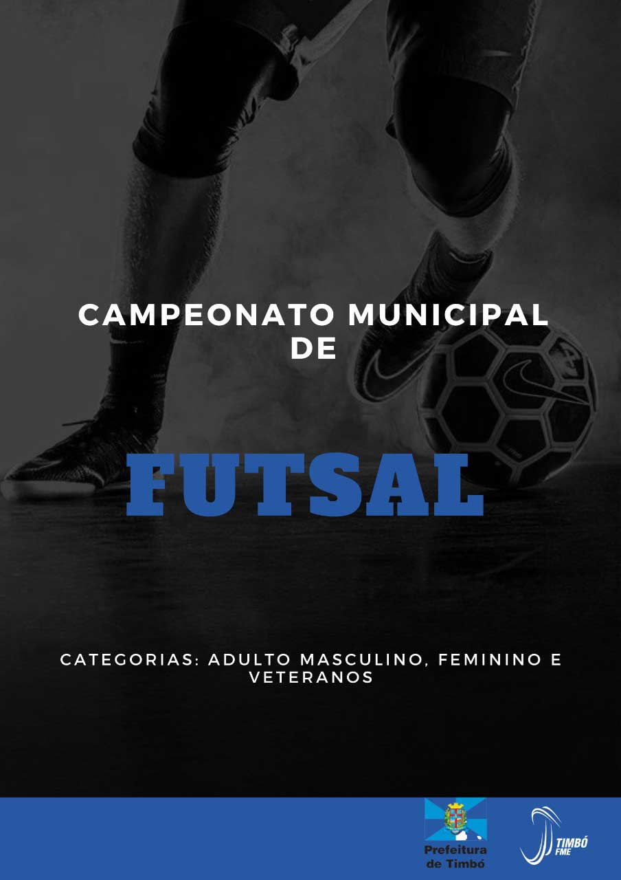 As inscrições para o Campeonato Municipal de Futsal 2021 de Timbó seguem até esta quarta-feira, dia 27 de outubro. São três categorias: adulto masculino, adulto feminino e veteranos.