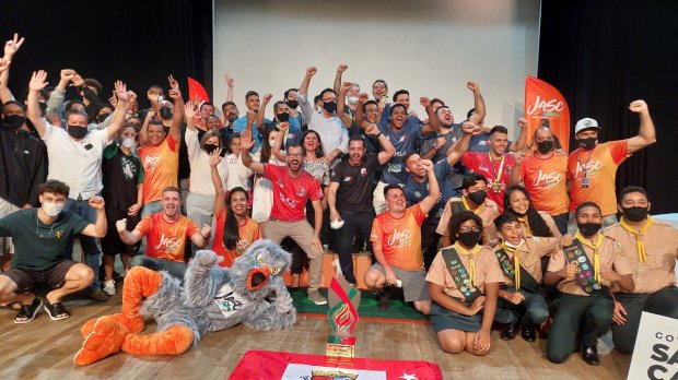 A cerimônia de encerramento da etapa estadual dos Jogos Abertos de Santa Catarina (Jasc), na noite deste domingo, 28, no teatro do Centro Multiuso de São José, coroou o município de Blumenau (foto acima) como campeão geral da 60ª edição da competição. A 43ª conquista da história. Os blumenauenses somaram 248 pontos. Em segundo lugar, na classificação geral, ficou São José (foto abaixo), com 171 pontos, com Florianópolis completando o pódio em terceiro lugar, com 152 pontos.