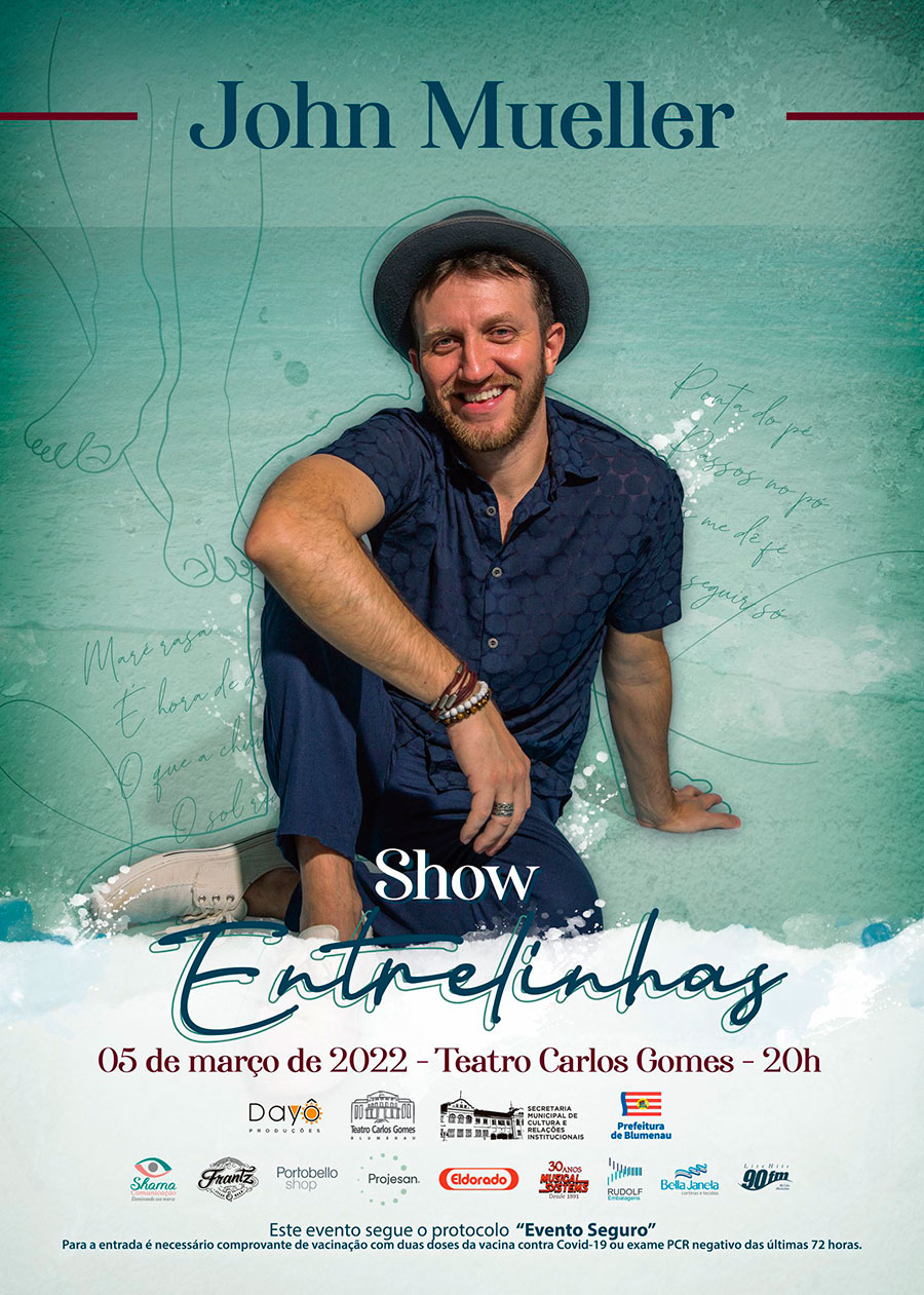 Música, tons, sons, o que nasce, cresce e envelhece, nas entrelinhas da vida. Neste sábado, 5 de março, o artista John Mueller traz ao público o show Entrelinhas, e apresenta canções que retratam sua trajetória até o momento, desde os álbuns “Por Um Fio”, “Na Linha Torta” e “Sintonia”, incluindo novos singles lançados e algumas releituras da música brasileira que o inspira. O evento ocorre às 20h, no Auditório Heinz Geyer, do Teatro Carlos Gomes (TCG), em Blumenau, e os ingressos antecipados estão à venda pelo Sympla https://bit.ly/3GfQLUE