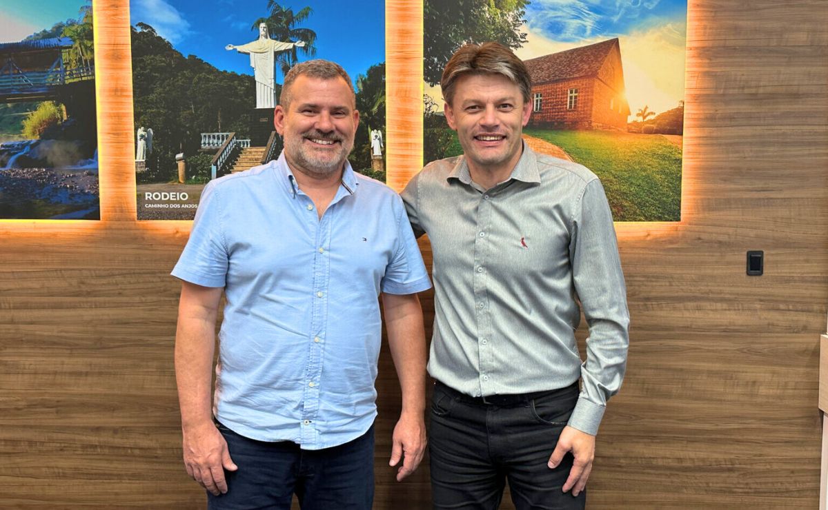 - Prefeito de Rio dos Cedros e Presidente eleito para 2026, Jorge Luiz Stolf, ao lado de Jean Michel Grundmann, Prefeito de Benedito Novo e Vice-Presidente do CIMVI.