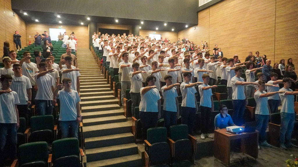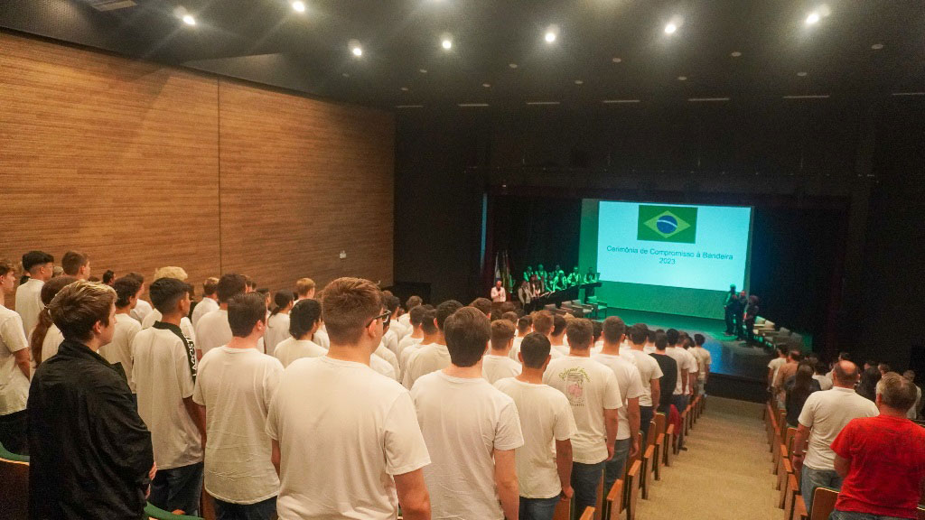 Foram 162 jovens que participaram deste momento importante de compromisso com o país. A Banda Municipal Prof. João Müller conduziu a execução dos hinos e o Grupo de Escoteiros pelo erguimento da bandeira do Brasil.