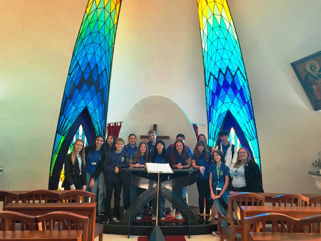 À tarde, o grupo seguiu para o TJSC, onde conheceu o plenário, o Museu do Judiciário Catarinense e a Capela Ecumênica Santa Catarina.