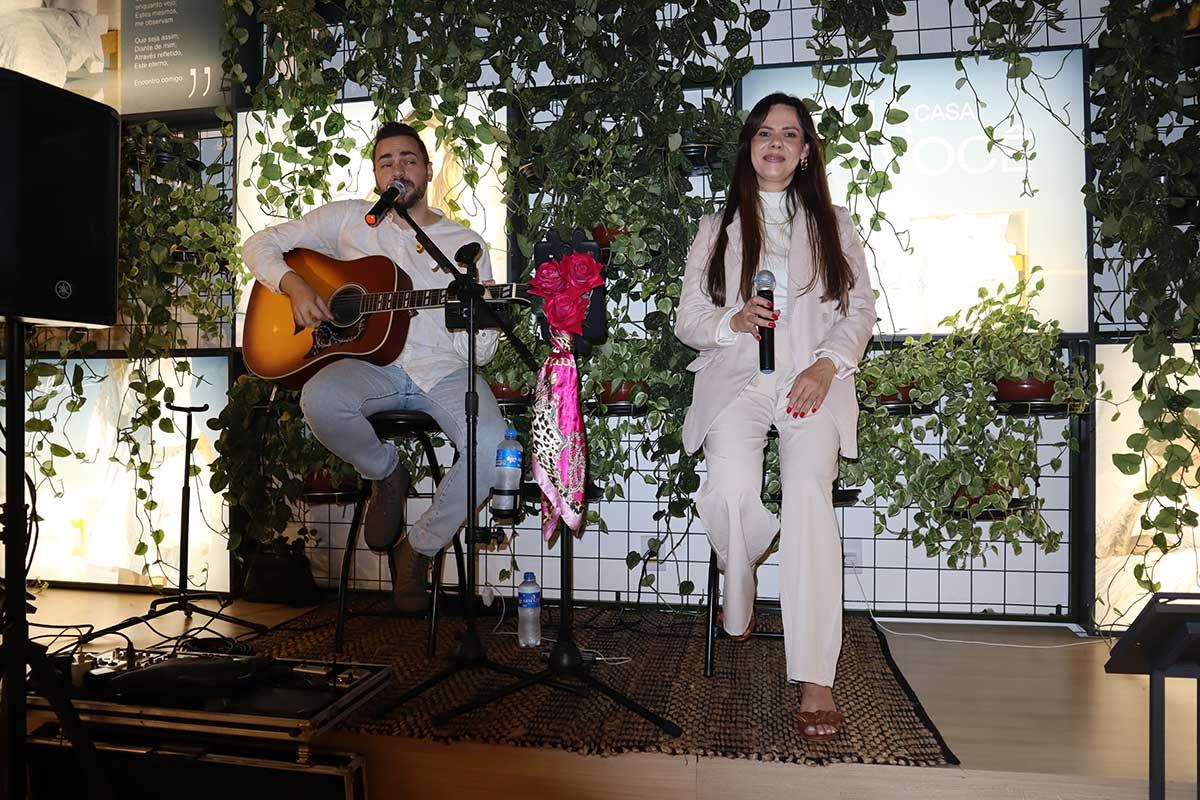 O jantar harmonizado pelo influenciador Diego Becker (@diegocozinha no Instagram) trouxe a leveza e delicadeza que a Coleção Reflexos inspira. Em uma noite com três cursos, com entrada, prato principal e sobremesa, além da sonoridade marcante da dupla Duo Compostos, que encantaram a todos com seu repertório único, os convidados tiveram a oportunidade de participar de um tour guiado por Augusto Garcia Gluher e Lais Adriana Nicoletti, Analistas de Produtos da Karsten. A poetisa Marina Hadlich proporcionou um encantamento extra com poemas personalizados para cada um dos presentes, trazendo um toque sensível e de reflexão para os próprios sentimentos, requisitando uma palavra a cada pessoa para compor um poema personalizado.