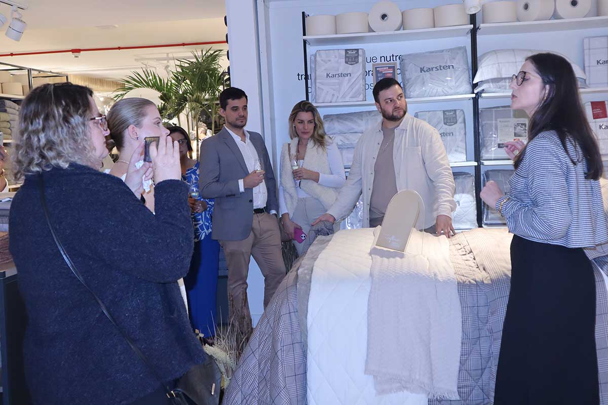 Para ambientar todas as sensações da nova coleção, a Karsten reproduziu, em sua loja de fábrica, em Blumenau, os jogos de cama e banho da campanha, juntamente com um jantar harmonizado temático. Servindo de termômetro, a arrancada principal das vendas da coleção ocorre durante esse período. “Estamos otimistas para o segundo semestre, avançando no mercado, fruto do nosso reposicionamento”, comemora Alvin Rauh Neto, “percebemos essa evolução, aumento de desejo e o trabalho que estamos realizando na área de trade marketing e comunicação está avançando”. Além do lançamento em Blumenau, a centenária têxtil também realizou um showroom em São Paulo no mês de julho, com o portfólio de produtos das marcas.