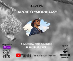 Modas de viola, parcerias, isolamento e música para aliviar o cotidiano em tempos de pandemia. Por conta deste novo enredo, o cantor blumenauense Léo Vieira está buscando apoio ao projeto Moradas. São duos do artista com cantores de várias regiões do Brasil em sistema collab que são postados no canal do Youtube de Vieira todas as terças-feiras. A ação surgiu por conta do distanciamento social gerado pela pandemia de Covid-19 e foi uma forma encontrada pelo artista para se manter ativo e levar música a todas as moradas. Para apoiar o projeto basta fazer uma contribuição espontânea de todo e qualquer valor para a conta: Nubank, Léo Vieira, agência 0001, conta corrente 62237496-4