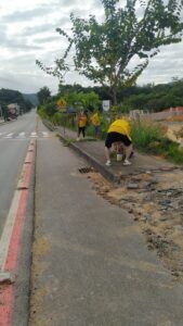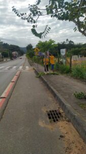 Além do manejo arbóreo, a equipe também promoveu a limpeza da área, recolhendo dois sacos de resíduos recicláveis e orgânicos descartados de forma irregular, contribuindo diretamente para um ambiente mais limpo e organizado.