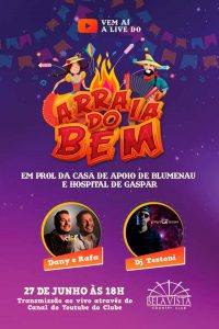 Em clima de Festa Junina, o Bela Vista Country Club, localizado em Gaspar, promove a live “Arraiá do Bem” em prol da Casa de Apoio de Blumenau e o Hospital de Gaspar. A live acontecerá neste sábado, 27 de junho, a partir das 18 horas.