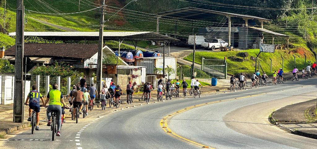Na manhã do último domingo, dia 05 de maio, aconteceu mais uma edição do Passeio Ciclístico, que tradicionalmente abre a programação do Maio Amarelo na cidade, um mês de conscientização sobre o trânsito, promovida pela da Prefeitura de Timbó, através da Secretaria de Planejamento e do Departamento Municipal de Trânsito (Demutran).