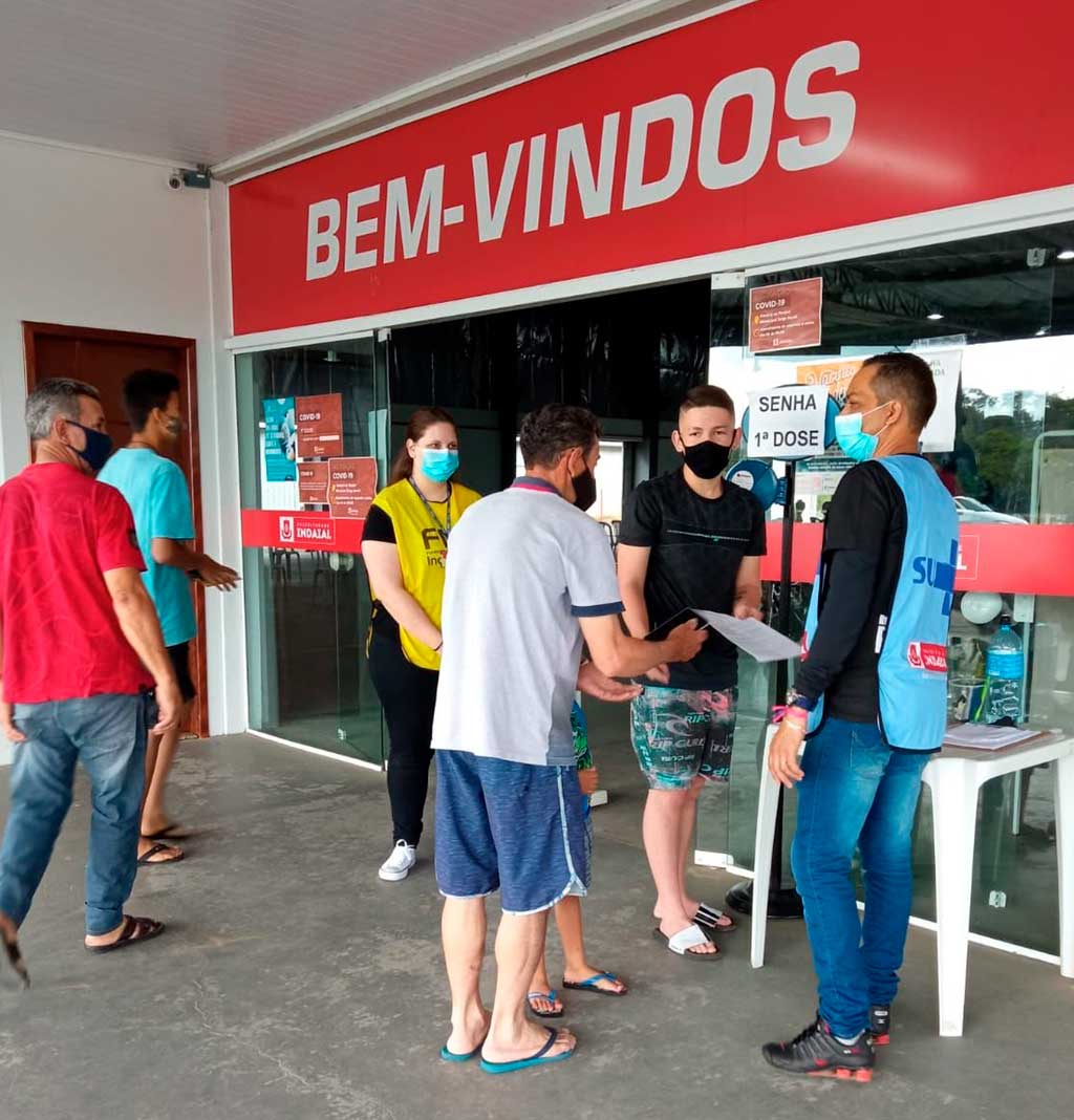 No último sábado (23), das 8h às 16h30, a Secretaria de Saúde de Indaial realizou mais uma ação especial de vacinação contra a Covid-19 na Central do Parque Municipal Jorge Hardt. 722 pessoas compareceram nas cabines do Pavilhão Rosemeri Wolf, das quais: 220 usuários com 12 anos ou mais para aplicação da 1ª dose; 358 pessoas para a 2ª dose e 141 usuários, entre idosos com 60 anos ou mais, trabalhadores de saúde e imunossuprimidos, para a dose de reforço – 3ª dose.