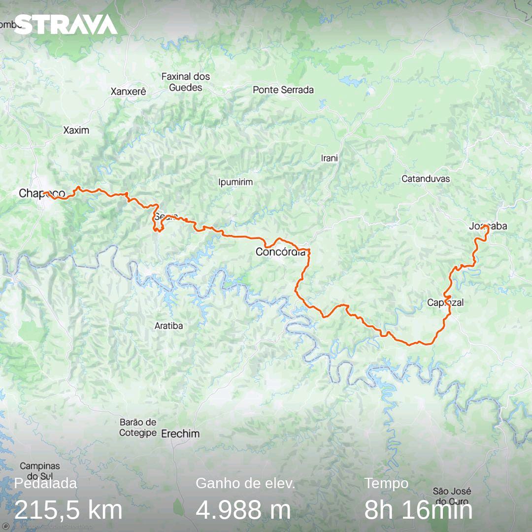 O quarto dia pode ser considerado a Etapa Rainha do “Desafio Tour de Santa Catarina – Márcio May 50 Anos”. Nesta segunda-feira (16 de maio) May fez a pedalada solo mais difícil de sua carreira. Foram 215,5km entre Chapecó e Joaçaba, percurso com quase 5 mil metros de subida em 8h16min de pedalada.