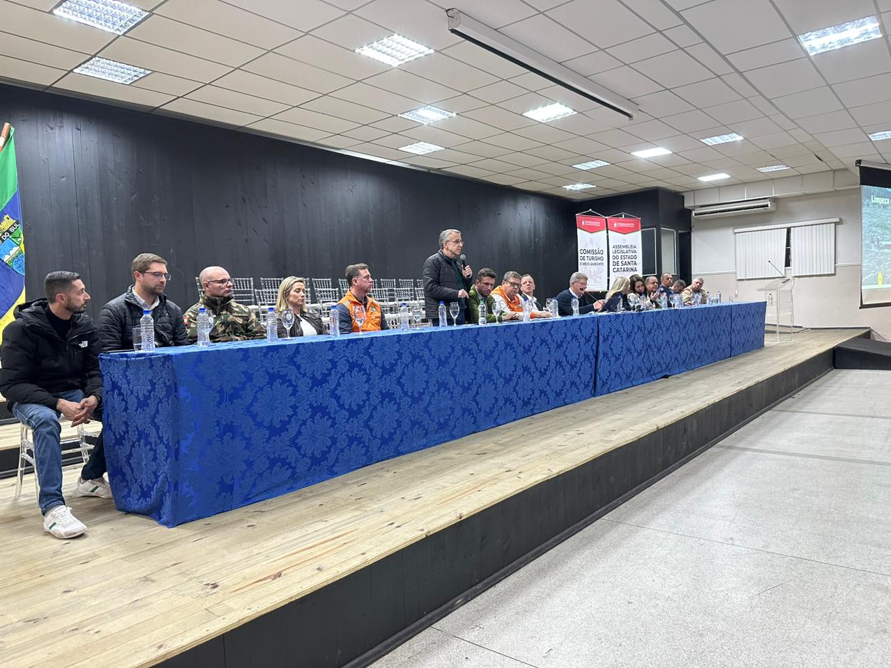 Participaram ainda da reunião representantes do Governo do Estado e deputados estaduais. Entre os pedidos apresentados durante a audiência, prefeitos e comunidade solicitam também da Alesc a criação de uma comissão permanente de discussão para assuntos de Defesa Civil.