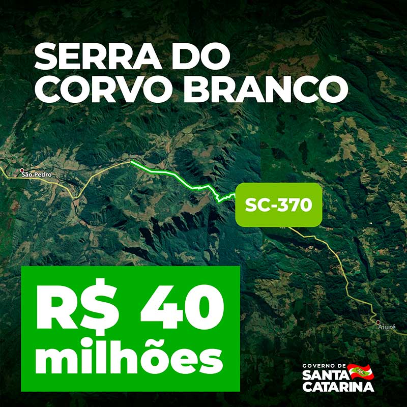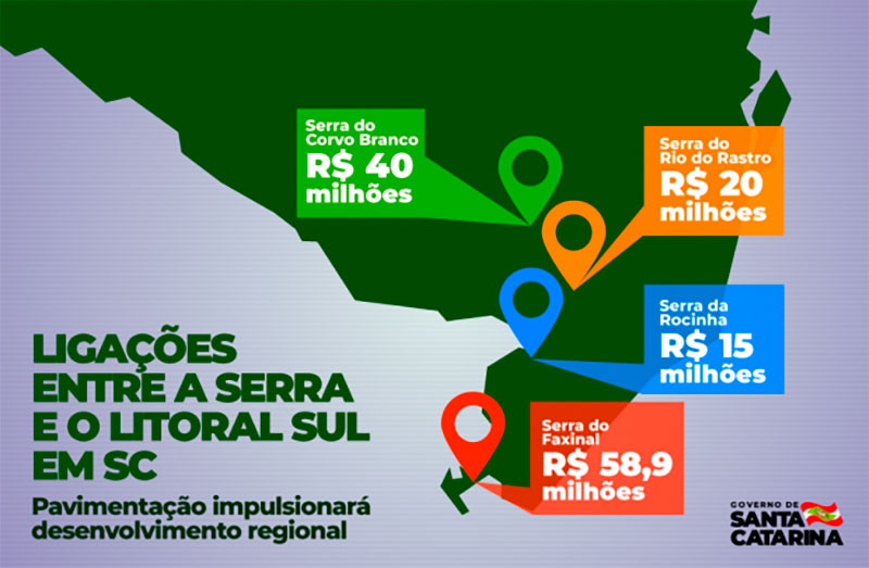 O secretário de Estado da Infraestrutura e Mobilidade, Thiago Vieira, destaca que o volume de investimentos destinado pelo Governo do Estado para os asfaltamentos e melhorias é sem precedentes. São R$ 40 milhões para a Serra do Corvo Branco, R$ 58,9 milhões para a Serra do Faxinal, R$ 15 milhões para a finalização da Serra da Rocinha e mais R$ 20 milhões para a maior intervenção de engenharia pela qual a Serra do Rio do Rastro já passou desde a sua inauguração.