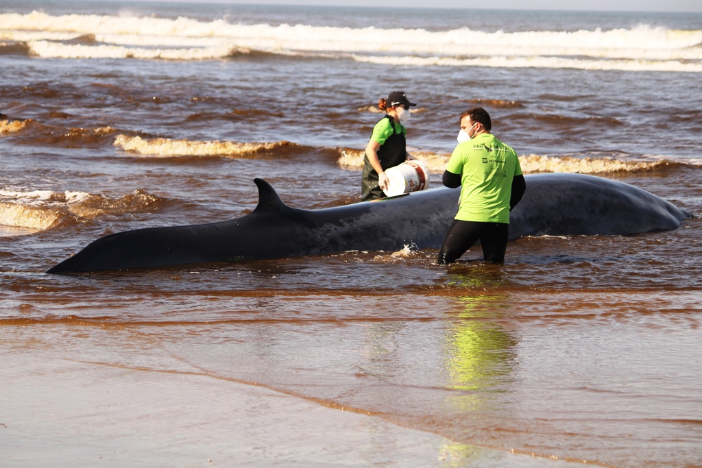 Morre baleia encalhada em Jaguaruna (SC), apesar dos esforços de autoridades e órgãos ambientais