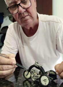 Na exposição o público pode conhecer com detalhes a arte e o talento de juntar com cola ou solda peças já existentes nos modelos desenvolvidos por Zé. Cada um deles leva cerca de quatro dias para ser desenvolvido. Todas as partes dos relógios são usadas na confecção: as máquinas geralmente se transformam em motores, pulseiras em assentos, fivelas em guidões e assim por diante.