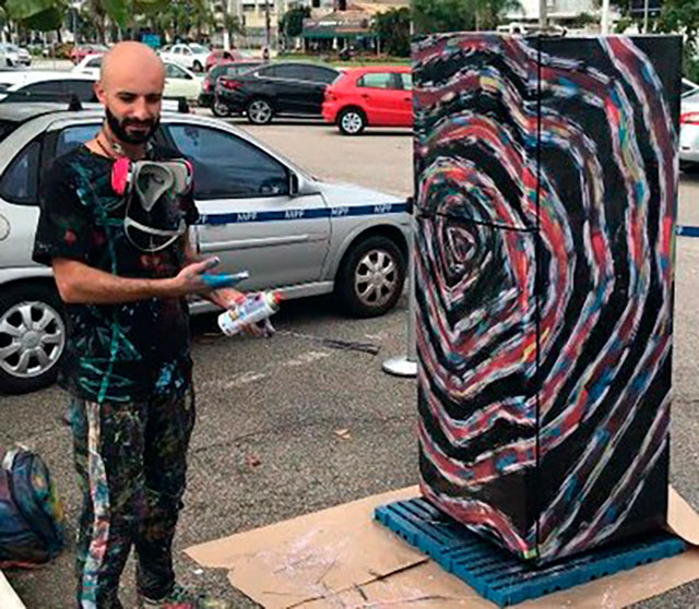 Alguns artistas foram convidados para customizar essas geladeiras. Rafael Lemas é um deles e afirma que “o projeto tem tudo a ver com um livro que eu já publiquei, então eu trouxe o personagem do meu livro para estampar a geladeira”.