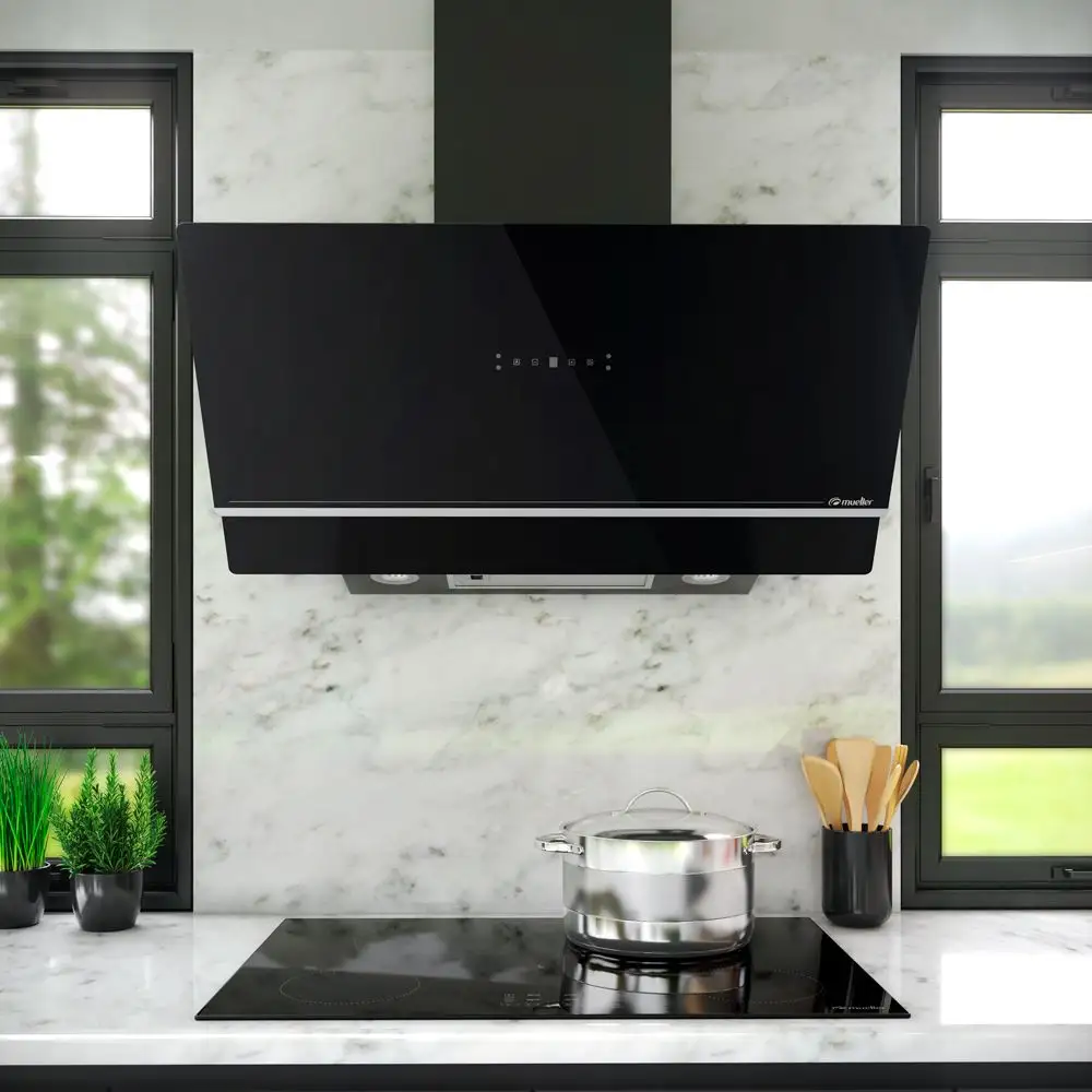A coifa de parede Mueller com base plana possui 90cm de largura e design moderno. O painel touchscreen garante modernidade e sofisticação ao produto, que conta ainda com regulagem da velocidade de sucção conforme o tipo de preparo de cada prato. O aparelho possui um timer que mantém a coifa ligada por mais tempo, gerando a exaustão da cozinha com máxima eficiência enquanto as refeições são finalizadas.
