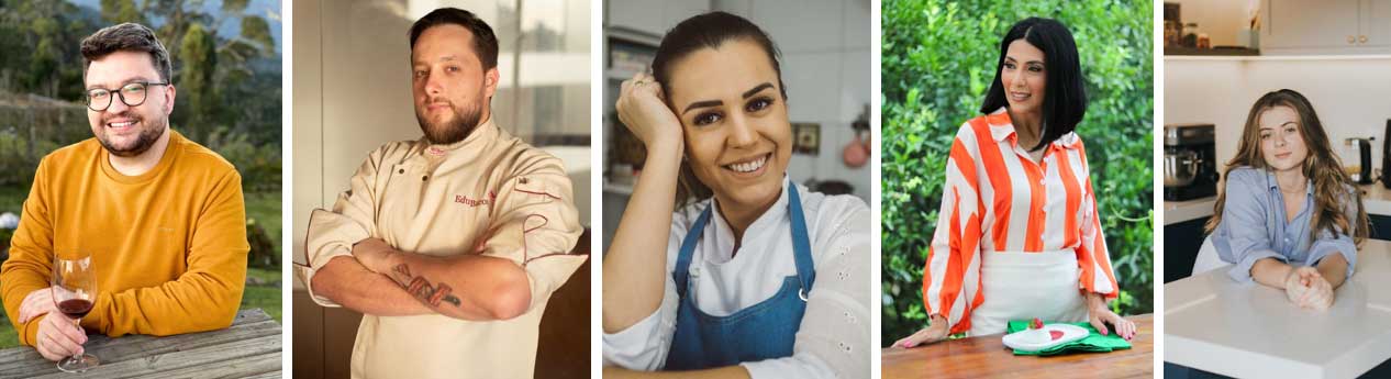 Chefs participantes do Espaço Mueller (da esq. para a dir.), no Festival Gastronômico de Pomerode: Diego Becker, Edu Bacon, Jana Bendo, Juliana Nardelli e Stefany Rohrs | Fotos: Divulgação
