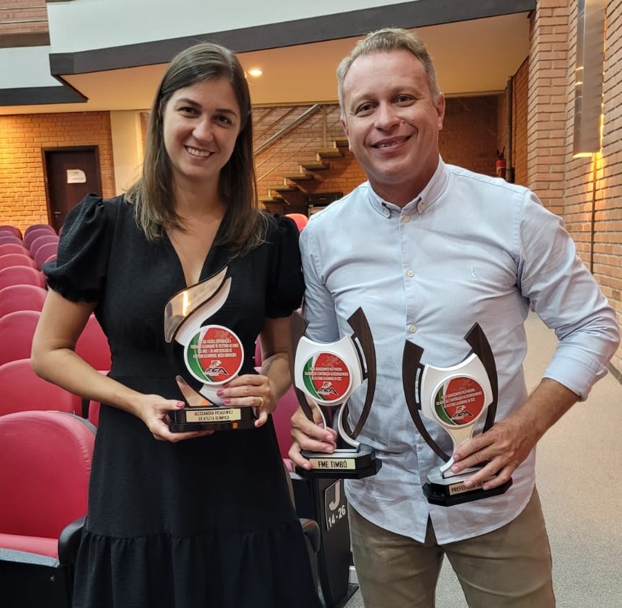 Além disso, a atleta timboense Alessandra Picagevicz também foi homenageada por sua importante contribuição no esporte.