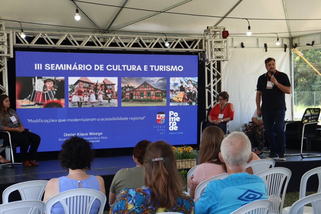 Dieter Klaus Weege, secretário de Planejamento e Meio Ambiente de Pomerode, palestrou sobre como a cidade vem se adequando e se tornando modelo no tema. Quando abordou as “Modificações que modernizaram a acessibilidade regionalmente”, ele trouxe pontos e ajustes que fazem a diferença no dia a dia, tanto de moradores quanto de turistas. “O nosso trabalho para melhorar a acessibilidade em Pomerode iniciou em 2020 com diversos estudos e pesquisas. Já temos a área central da cidade adequada, que traz, por exemplo, calçadas niveladas e que oferecem conforto e segurança, ciclovias e ciclofaixas, além de totens em praças com informações em braile. Indicamos as direções e o que poderá ser encontrado naquela região. O projeto já está pronto e aprovado, e agora seguimos transformando ele em realidade para sermos uma cidade exemplo quando se fala sobre acessibilidade e turismo inteligente”, ressalta.