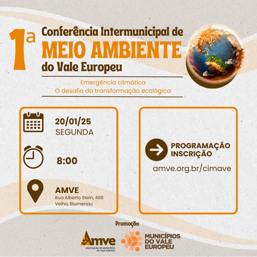 Com a crescente urgência das questões climáticas, as prefeituras da Associação de Municípios do Vale Europeu (Amve) estão se preparando para a 1ª Conferência Intermunicipal de Meio Ambiente do Vale Europeu (Cimave), que ocorrerá na próxima segunda-feira (20), das 8h às 16h, no auditório da entidade, em Blumenau.