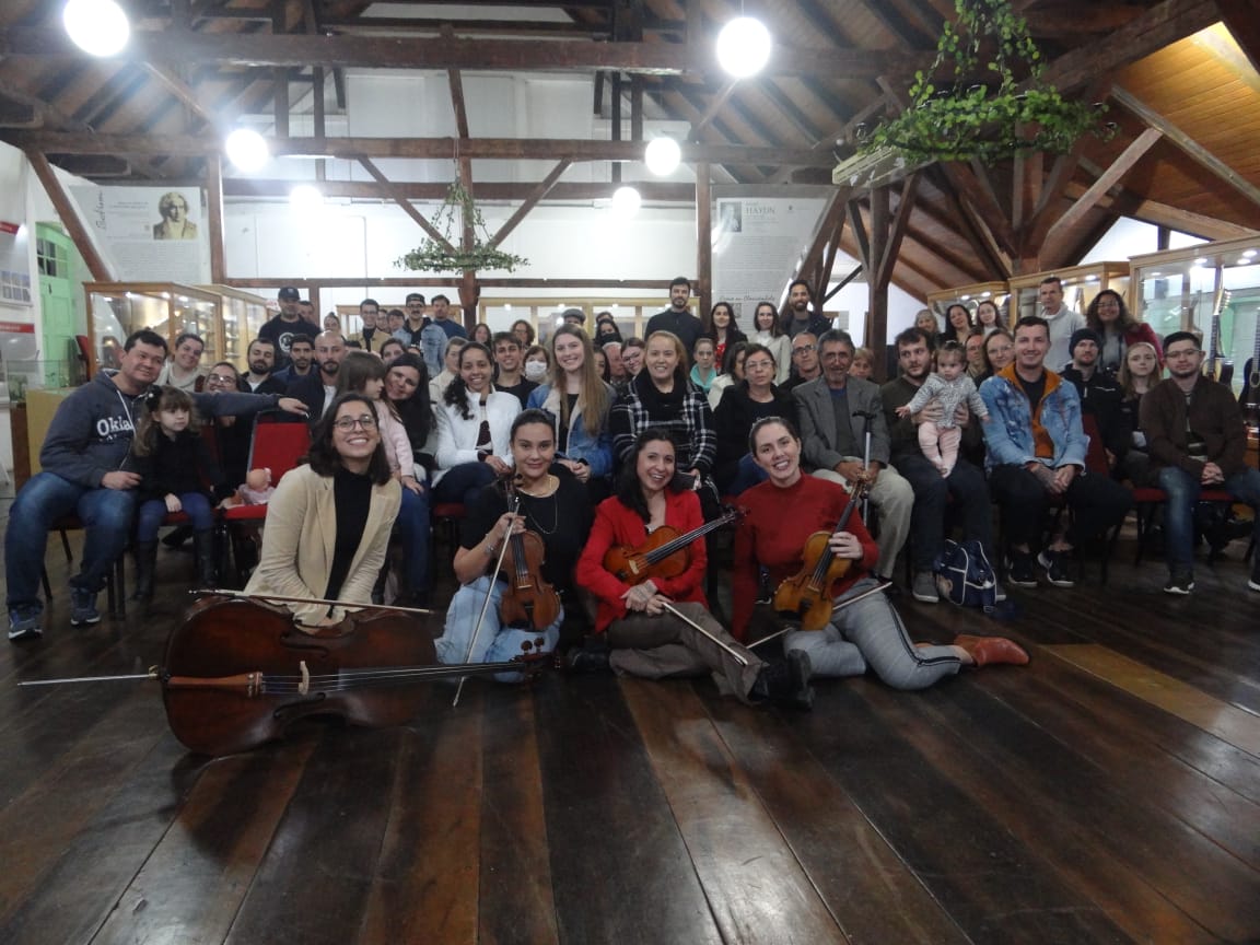 O público foi prestigiar As Quartettas, grupo formado por Débora P. Henz (I violino), Juliana Schuetze (II violino), Bruna Hedler (Viola e Voz), Caroline Gruetzmacher Souza (cello).
