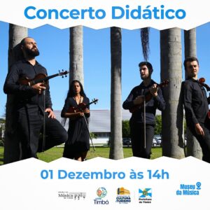 Nesta quinta-feira, dia 01 de dezembro, o Museu da Música será palco do Concerto Didático com Quarteto da UDESC. É a partir das 14h, com entrada gratuita.