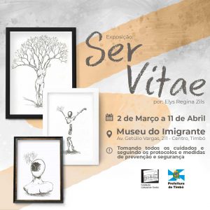 A partir da próxima semana, dia 2 de março, o Museu do Imigrante reabre a exposição “Ser Vitae”, da artista Elys Regina Zils, que precisou ser interrompida no ano passado devido à pandemia da Covid-19. Agora, tomando todos os cuidados e seguindo os protocolos e medidas de prevenção e segurança (como distanciamento, álcool em gel à disposição, uso de máscara), a exposição irá acontecer até o dia 11 de abril.