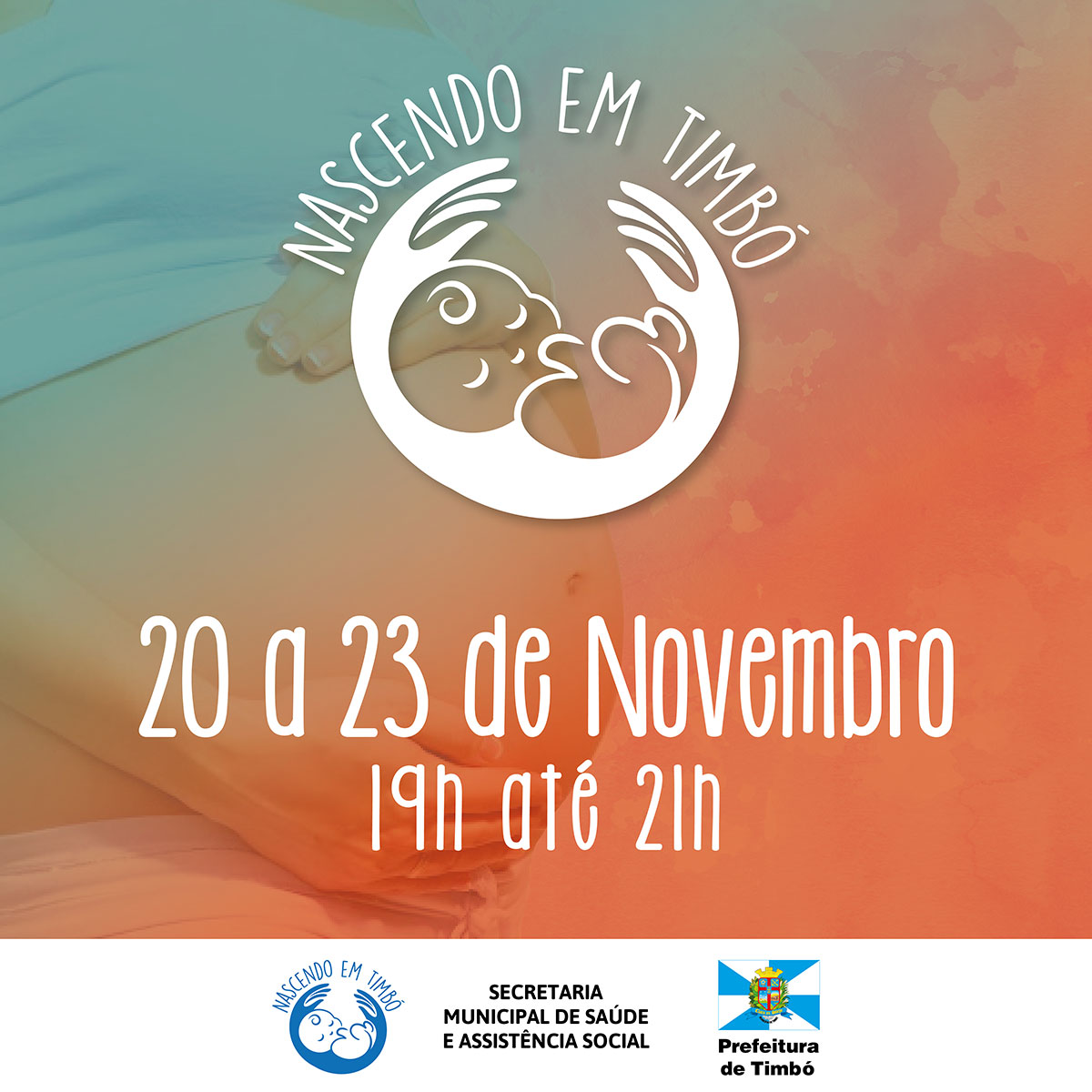 Aos papais e mamães, entre os dias 20 e 23 de novembro acontece mais uma edição do projeto Nascendo em Timbó, promovido pela Prefeitura de Timbó, através Secretaria Municipal de Saúde e Assistência Social.