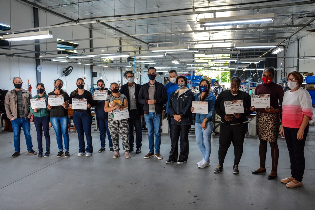 No dia da costureira, primeira turma do curso de costura industrial recebe certificados.