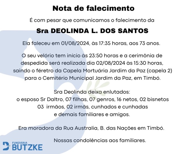 Notas de Falecimento – 01/08/2024 Agosto 1, 2024 0 Por Redação Whatsapp Share Post Share Pinterest A FAMÍLIA NOSSO SENTIMENTO E CONFORTO——————— OUTRAS NOTAS ACESSE https://bit.ly/2YDELw3 Matérias Relacionadas:No related posts. Associação de Municípios do Vale Europeu comemora 55 anos de fundação Sebrae/SC lança guia para candidatos com foco em pequenos negócios