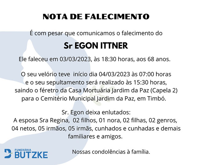 Notas de Falecimento – 04/03/2023 Março 4, 2023 0 Por Redação Whatsapp Share Post Share Pinterest A FAMÍLIA NOSSO SENTIMENTO E CONFORTO——————— OUTRAS NOTAS ACESSE https://bit.ly/2YDELw3 Matérias Relacionadas:No related posts. O SAMAE Timbó torna público o Ato Convocatório Nº 03/2023, para o cargo de Agente de Coleta Secretaria de Saúde de Timbó promove Dança Circular alusiva ao Março Lilás
