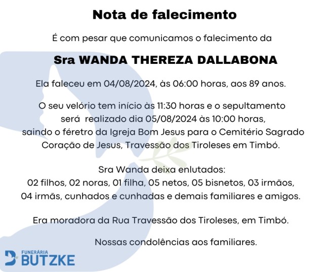 Notas de Falecimento – 04/08/2024 Agosto 4, 2024 0 Por Redação Whatsapp Share Post Share Pinterest A FAMÍLIA NOSSO SENTIMENTO E CONFORTO——————— OUTRAS NOTAS ACESSE https://bit.ly/2YDELw3 Matérias Relacionadas:No related posts. Notas de Falecimento – 03/08/2024 Eleições 2024 – Em convenção realizada na noite de domingo (04/08), Valcir Ferrari foi aclamado candidato a reeleição a Prefeito de Rodeio