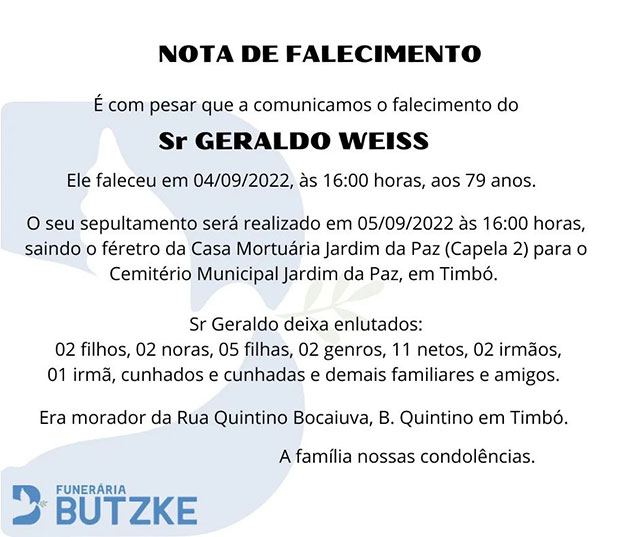 Notas de Falecimento – 04/09/2022 Setembro 4, 2022 0 Por Redação Whatsapp Share Post Share Pinterest A FAMÍLIA NOSSO SENTIMENTO E CONFORTO——————— OUTRAS NOTAS ACESSE https://bit.ly/2YDELw3 Matérias Relacionadas:No related posts. Eleições 2022: Lançamento Oficial da Campanha do Candidato a Deputado Estadual Paulinho Weiss recebe centenas de pessoas em Rodeio neste sábado Empreendedoras blumenauenses trazem à cidade franquia inovadora do segmento fitness