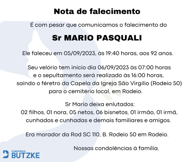 Notas de Falecimento – 05/09/2023 Setembro 5, 2023 0 Por Redação Whatsapp Share Post Share Pinterest A FAMÍLIA NOSSO SENTIMENTO E CONFORTO——————— OUTRAS NOTAS ACESSE https://bit.ly/2YDELw3 Matérias Relacionadas:No related posts. Grupo Grandes Empreendedoras realiza 7ª edição de 2023 com o tema “Precificação Inteligente” com a empreendedora Priscila Kannenberg Pela primeira vez Festa do Imigrante terá cartão de consumo