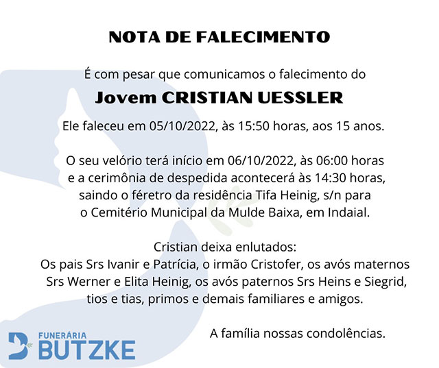 Notas de Falecimento – 05/10/2022 Outubro 5, 2022 0 Por Redação Whatsapp Share Post Share Pinterest A FAMÍLIA NOSSO SENTIMENTO E CONFORTO——————— OUTRAS NOTAS ACESSE https://bit.ly/2YDELw3 Matérias Relacionadas:No related posts. Iniciativa do Sebrae/SC busca aproximar a instituição dos empresários do Norte da Ilha Blumenau – Choppmotorrad ‘acelera’ para a Oktober das Oktobers