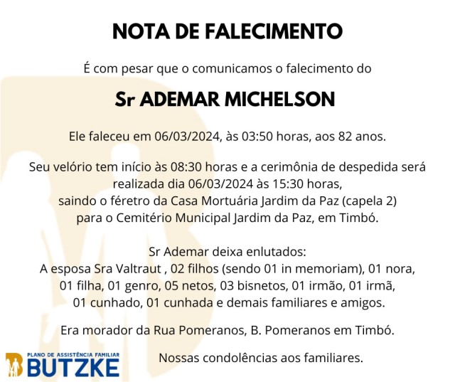 Notas de Falecimento – 06/03/2024 Março 6, 2024 0 Por Redação Whatsapp Share Post Share Pinterest A FAMÍLIA NOSSO SENTIMENTO E CONFORTO——————— OUTRAS NOTAS ACESSE https://bit.ly/2YDELw3 Matérias Relacionadas:No related posts. Museu da Música promove exposição “A Mulher na Música” Cuidados com sistema de esgoto contribuem no combate à dengue