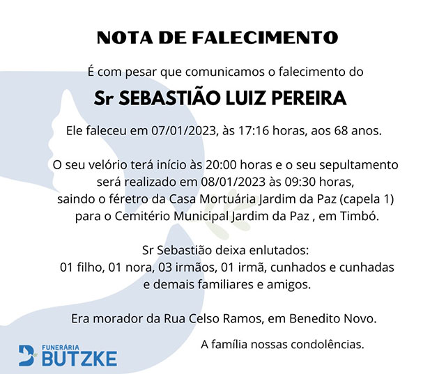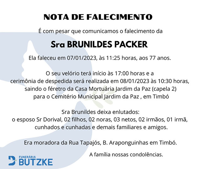 Notas de Falecimento – 07/01/2023 Janeiro 7, 2023 0 Por Redação Whatsapp Share Post Share Pinterest A FAMÍLIA NOSSO SENTIMENTO E CONFORTO——————— OUTRAS NOTAS ACESSE https://bit.ly/2YDELw3 Matérias Relacionadas:No related posts. Comunicação corporativa deve atingir faturamento de R$ 4 bilhões no Brasil Inscrições abertas para o Jovem Programador 2023
