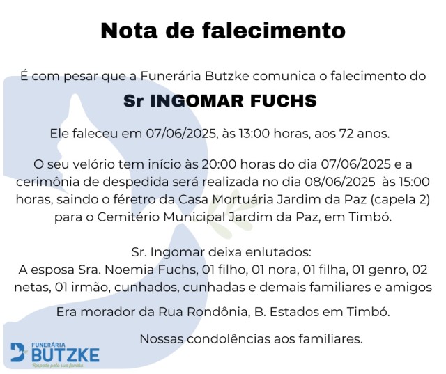 Notas de Falecimento – 07/06/2025 Junho 7, 2025 0 Por Redação Whatsapp Share Post Share Pinterest A FAMÍLIA NOSSO SENTIMENTO E CONFORTO ——————— OUTRAS NOTAS ACESSE https://bit.ly/2YDELw3 Matérias Relacionadas:No related posts. Municípios, Estado e Oase chegam a acordo para manter atendimentos no Pronto-Socorro Pets e a Causa Animal – Um Guia para Adoção Responsável e Combate aos Maus-Tratos