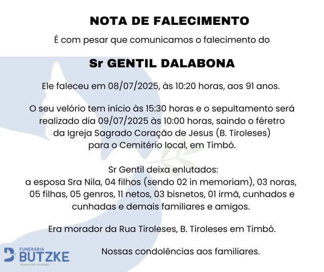 Notas de Falecimento – 08/07/2025 Julho 8, 2025 0 Por Redação Whatsapp Share Post Share Pinterest A FAMÍLIA NOSSO SENTIMENTO E CONFORTO ——————— OUTRAS NOTAS ACESSE https://bit.ly/2YDELw3 Matérias Relacionadas: Notas de Falecimento – 07/06/2025 Notas de Falecimento – 30/06/2025 Notas de Falecimento – 02/07/2025 Férias escolares exigem atenção redobrada ao tempo de tela de crianças e adolescentes MDB Mulher Indaial promove, nesta quinta-feira, 10, palestra gratuita sobre inteligência emocional