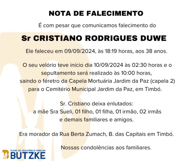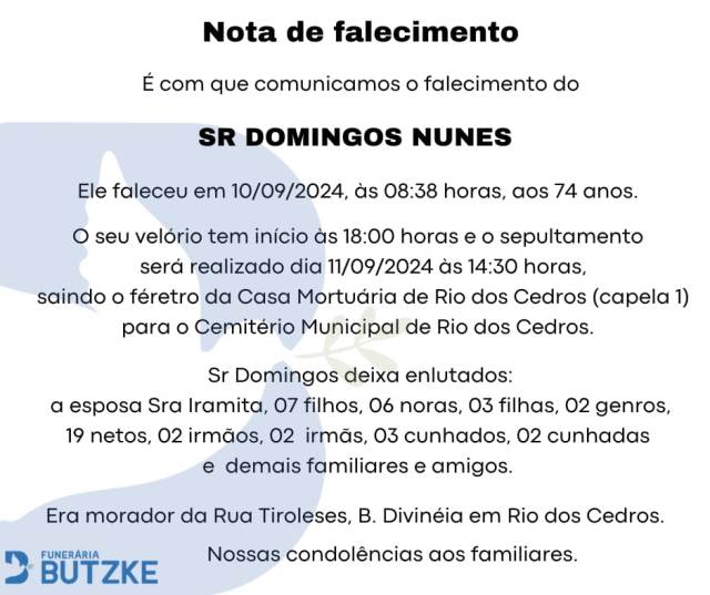 Notas de Falecimento – 10/09/2024 Setembro 10, 2024 0 Por Redação Whatsapp Share Post Share Pinterest A FAMÍLIA NOSSO SENTIMENTO E CONFORTO——————— OUTRAS NOTAS ACESSE https://bit.ly/2YDELw3 Matérias Relacionadas:No related posts. Lions Clube Indaial Vitória Régia realiza cerca de 200 testes de glicemia na campanha de saúde neste sábado SC – 113 municípios catarinenses ainda não aderiram ao Programa Escola em Tempo Integral do governo federal