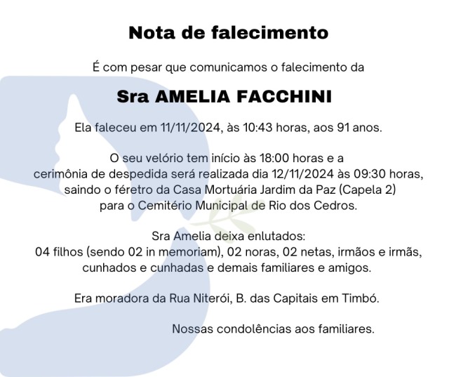 Notas de Falecimento – 11/11/2024 Novembro 11, 2024 0 Por Redação Whatsapp Share Post Share Pinterest A FAMÍLIA NOSSO SENTIMENTO E CONFORTO——————— OUTRAS NOTAS ACESSE https://bit.ly/2YDELw3 Matérias Relacionadas:No related posts. SAMAE Timbó divulga Coleta de Resíduos no Feriado de 15 de Novembro em Timbó Hapvida NotreDame Intermédica conquista 3º lugar em premiação nacional de inovação