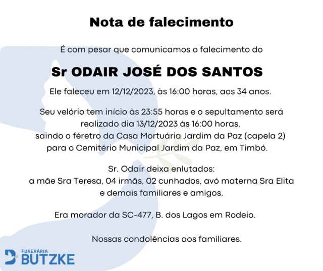 Notas de Falecimento – 12/12/2023 Dezembro 12, 2023 0 Por Redação Whatsapp Share Post Share Pinterest A FAMÍLIA NOSSO SENTIMENTO E CONFORTO——————— OUTRAS NOTAS ACESSE https://bit.ly/2YDELw3 Matérias Relacionadas:No related posts. Show Nacional com Falamansa, Concurso Delícias de Natal e 1º Festival da Canção são novidades da Weihnachtsfest A Jornada de Gabriel Dutra Contra a Distrofia Muscular de Becker