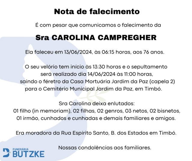 Notas de Falecimento – 13/06/2024 Junho 13, 2024 0 Por Redação Whatsapp Share Post Share Pinterest A FAMÍLIA NOSSO SENTIMENTO E CONFORTO——————— OUTRAS NOTAS ACESSE https://bit.ly/2YDELw3 Matérias Relacionadas:No related posts. Situação da Dengue em Timbó – 13/06/2024 Timbó – Alistamento Militar Obrigatório de 2024 deve ser feito até 30 de junho