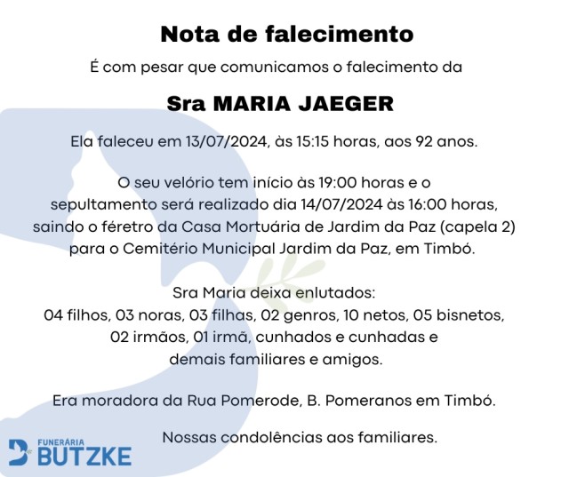 Notas de Falecimento – 13/07/2024 Julho 13, 2024 0 Por Redação Whatsapp Share Post Share Pinterest A FAMÍLIA NOSSO SENTIMENTO E CONFORTO——————— OUTRAS NOTAS ACESSE https://bit.ly/2YDELw3 Matérias Relacionadas:No related posts. O Museu da Música de Timbó e o Dia do Rock Paula Tessarolo encanta público com concerto “Gala Lírica”, em homenagem aos 90 anos de Indaial