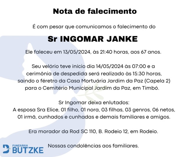 Notas de Falecimento – 14/05/2024 Maio 14, 2024 0 Por Redação Whatsapp Share Post Share Pinterest A FAMÍLIA NOSSO SENTIMENTO E CONFORTO——————— OUTRAS NOTAS ACESSE https://bit.ly/2YDELw3 Matérias Relacionadas:No related posts. Evento sobre educação tecnológica reúne mantenedores escolares de todo o Brasil em Blumenau Circuito ‘A Flauta Mágica’ com a Philarmonia Brusque desembarca em Timbó