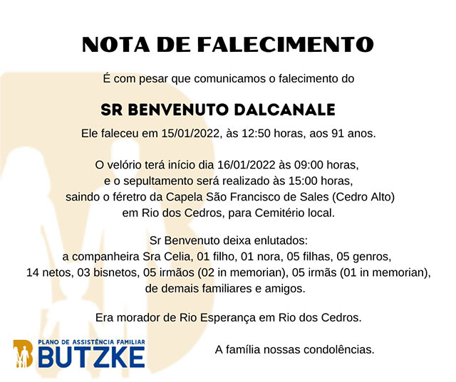 Notas de Falecimento – 15/01/2022 Janeiro 15, 2022 0 Por Redação Whatsapp Share Post Share Pinterest A FAMÍLIA NOSSO SENTIMENTO E CONFORTO ——————— OUTRAS NOTAS ACESSE https://bit.ly/2YDELw3 Matérias Relacionadas:No related posts. Vacinação em SC: crianças de 5 a 11 anos começam a ser vacinadas contra Covid-19 Covid – Matriz de Risco acompanha alta de casos e passa a apontar 15 regiões no nível alto