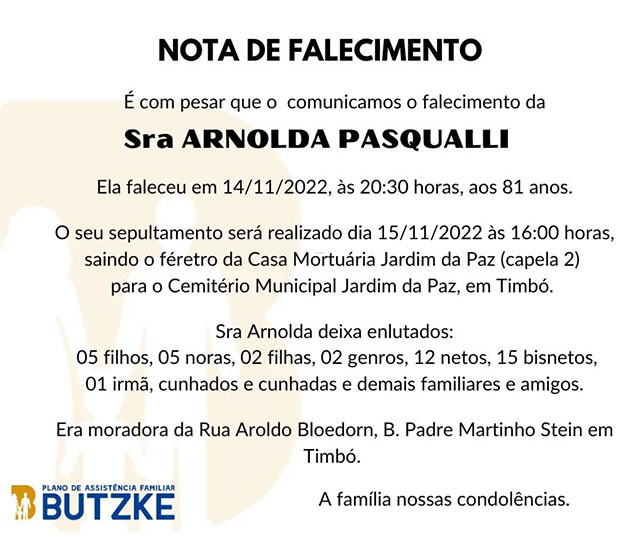 Notas de Falecimento – 15/11/2022 Novembro 15, 2022 0 Por Redação Whatsapp Share Post Share Pinterest A FAMÍLIA NOSSO SENTIMENTO E CONFORTO——————— OUTRAS NOTAS ACESSE https://bit.ly/2YDELw3 Matérias Relacionadas:No related posts. E.C Água Verde/Colortech é campeão do 32º Campeonato Municipal de Futebol de Campo de Timbó Quinto Constitucional: a voz daquele que precisa da proteção da justiça