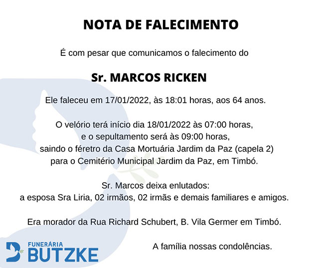 Notas de Falecimento – 17/01/2022 Janeiro 17, 2022 0 Por Redação Whatsapp Share Post Share Pinterest A FAMÍLIA NOSSO SENTIMENTO E CONFORTO ——————— OUTRAS NOTAS ACESSE https://bit.ly/2YDELw3 Matérias Relacionadas:No related posts. Prefeitura de Indaial inicia a vacinação contra a COVID-19 para crianças de 5 a 11 anos de grupos prioritários Câmara de Timbó realiza primeira audiência pública do ano