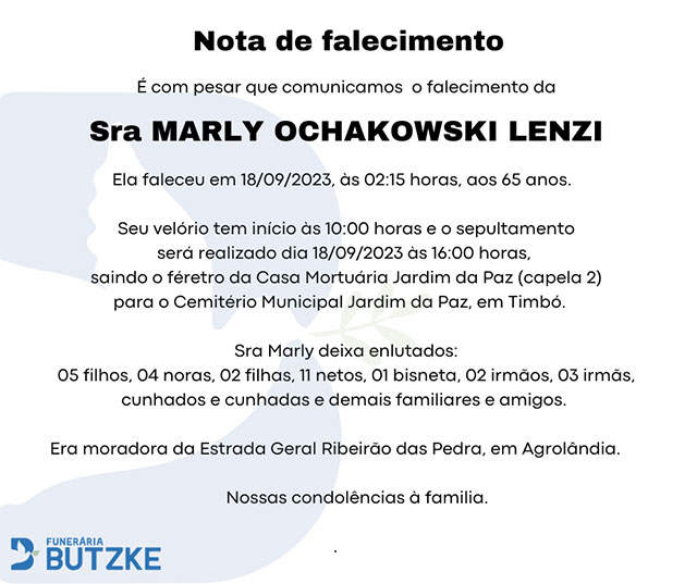 Notas de Falecimento – 18/09/2023 Setembro 18, 2023 0 Por Redação Whatsapp Share Post Share Pinterest A FAMÍLIA NOSSO SENTIMENTO E CONFORTO——————— OUTRAS NOTAS ACESSE https://bit.ly/2YDELw3 Matérias Relacionadas:No related posts. Beto Carrero World – Campeonato Brasileiro de Drift terá ingresso solidário e visitação aos boxes Ordem de serviço da construção da nova Unidade de Saúde e Praça da Saúde do Bairro Dona Clara é assinada