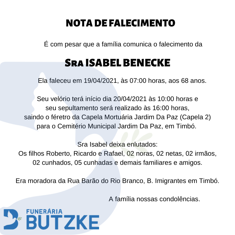 Notas de Falecimento – 19/04/2021 Abril 19, 2021 0 Por Redação Whatsapp Share Post Share Pinterest A FAMÍLIA NOSSO SENTIMENTO E CONFORTOMatérias Relacionadas:No related posts. Santa Catarina bate novo recorde com exportações de carne suína em março Notas de Falecimento – 20/04/2021